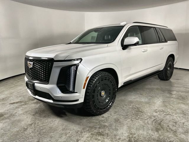 This stunning one-owner 2025 Cadillac Escalade ESV Sport Platinum 4WD is finished in a sleek Crystal White Tricoat exterior and complemented by a luxurious Jet Black interior. It comes packed with features that will take your driving experience to the next level! Sporting head-turning 24-inch all-black alloy wheels, it is equipped with the Preferred Equipment Group and offers top-tier features like the AKG Studio Reference 36-Speaker Audio System, Blind Zone Steering Assist with Trailering, Electronic Limited-Slip Differential, Magnetic Ride Control Suspension, Air Ride Adaptive Suspension, and much more!