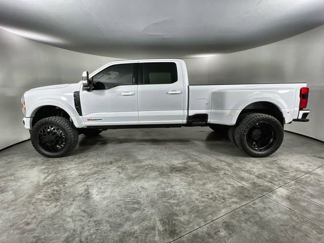 This stunning Low Mileage 2023 Oxford White Ford F-450 SuperDuty Lariat 4WD Dually is sure to turn heads! With a sleek Black Onyx Leather interior and Power Stroke 6.7L V8 Turbodiesel, this one-owner truck is packed with amazing features and upgrades. It has been professionally lifted with a Carli Suspension System to perfectly fit those bold, all-black 24-inch JTX Forged alloy wheels wrapped in rugged 37-inch NITTO Off-Road tires. Also, a dual steering stablizer kit with FOX Performance Stablizers to insure reduced bump steer and steering wheel feedback while enhancing your handling.