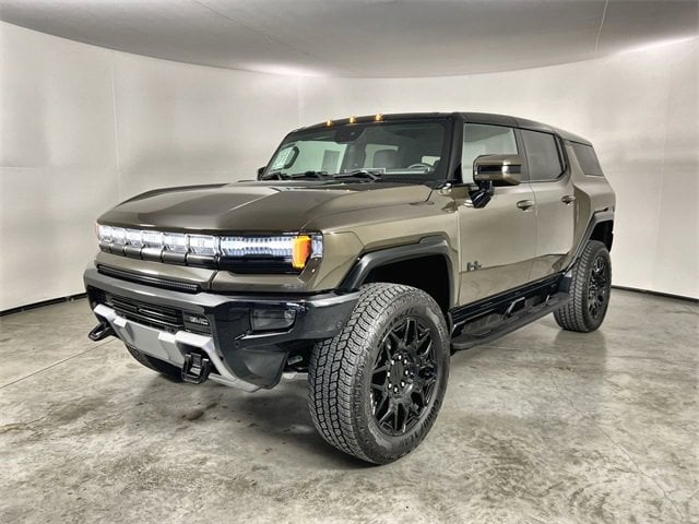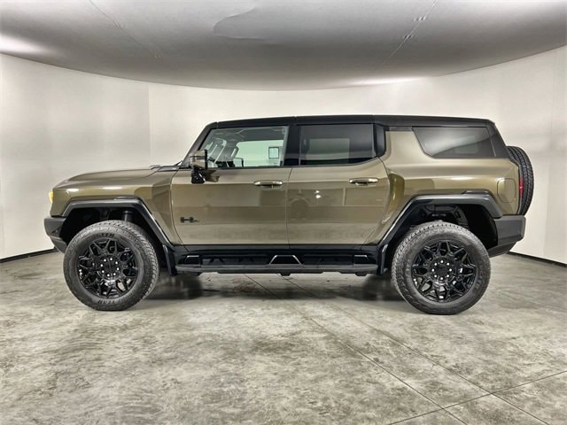 Check out this 2025 GMC Hummer EV SUV 3X AWD in Deep Aurora Metallic (Dark Bronze)! It is packed with features like the Dark Essentials Package, Black Rear D-Ring Recovery Hook, 22-inch Gloss Black Alloy Wheels, and more. You will also enjoy premium comforts like 12-way power-adjustable front seats, heated and ventilated seats, a heated steering wheel, Bose 14-speaker sound system, and a whole entertainment setup with Apple CarPlay/Android Auto and SiriusXM. It has all the safety and tech features too adaptive suspension, 4-wheel disc brakes, navigation, wireless phone projection, OnStar emergency communication, and adaptive air ride suspension. With stylish details like Performance Red Emblems and Premium Leather-Alternative seating, this SUV is both rugged and luxury-packed. Oh, and it has a clean CARFAX!