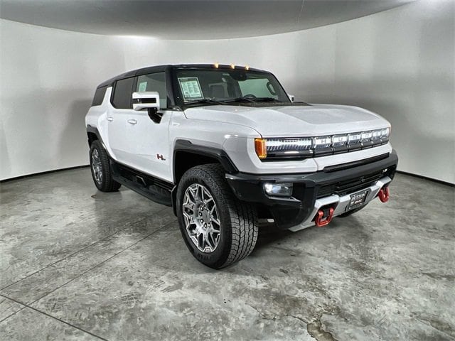 This 2025 Interstellar White GMC Hummer EV SUV 3X AWD is well equipped and includes these features and benefits: Cargo Utility Package (Accessory Cargo Net, All-Weather Cargo Liner, Cargo Security Shade, and Collapsible Cargo Organizer), Preferred Equipment Group 1SG, Sport Package (Custom Molded Front and Rear Splash Guards and Performance Red Emblems), Sport Pedal Cover Package, 12-Way Power Driver Seat Adjuster, 12-Way Power Passenger Seat Adjuster, 14 Speakers, 4-Wheel Disc Brakes, ABS brakes, Adaptive suspension, Air Conditioning, Alloy wheels, AM/FM radio: SiriusXM with 360L, Apple CarPlay/Android Auto, Auto High-beam Headlights, Auto-dimming door mirrors, Auto-dimming Rear-View mirror, Automatic temperature control, Bose Centerpoint Premium 14-Speaker Surround Sound, Brake assist, Compass, Delay-off headlights, Driver door bin, Driver Memory, Driver vanity mirror, Dual front impact airbags, Dual front side impact airbags, Electronic Stability Control, Emergency communication system: OnStar, Four wheel independent suspension, Front and Rear Air Ride Adaptive Suspension, Front anti-roll bar, Front Bucket Seats, Front Center Armrest, Front dual zone A/C, Front License Plate Kit, Front reading lights, Garage door transmitter, Heated door mirrors, Heated Driver and Front Passenger Seats, Heated front seats, Heated rear seats, Heated steering wheel, Illuminated entry, Low tire pressure warning, Memory seat, Navigation System, Occupant sensing airbag, Outside temperature display, Overhead console, Panic alarm, Passenger door bin, Passenger vanity mirror, Performance Red D-Ring Recovery Hooks (LPO), Portable Dual Level Charge Cord, Power door mirrors, Power driver seat, Power passenger seat, Power steering, Power windows, Premium audio system: Premium GMC Infotainment System, Premium Front Bucket Seats with Center Console, Premium Leather-Alternative Seating Surfaces, Radio data system, Radio: AM/FM Audio System, Rain sensing wipers, Rear air conditioning, Rear reading lights, Rear seat center armrest, Rear window defroster, Remote keyless entry, Security system, SiriusXM with 360L Trial Subscription, Speed control, Speed-sensing steering, Split folding rear seat, Steering wheel memory, Steering wheel mounted audio controls, Telescoping steering wheel, Tilt steering wheel, Traction control, Trip computer, Turn signal indicator mirrors, Variably intermittent wipers, Ventilated Driver and Front Passenger Seats, Ventilated front seats, Wheels: 22 x 9.5 Premium Finish Painted Aluminum, and Wireless Phone Projection. Clean CARFAX.