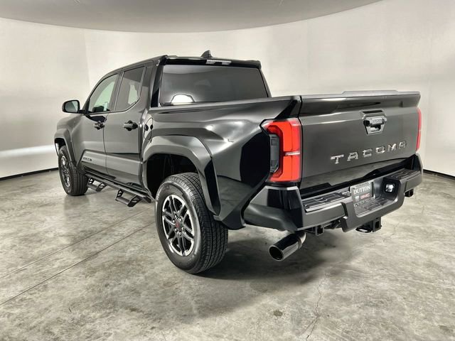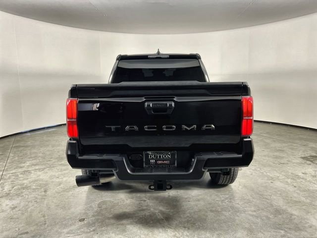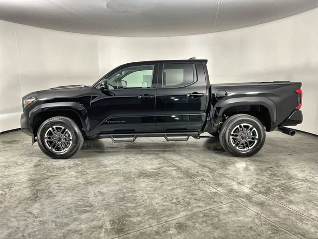 This 2025 Black Toyota Tacoma TRD Sport RWD is well equipped and includes these features and benefits: ABS brakes, Active Cruise Control, Alloy wheels, Electronic Stability Control, Heated door mirrors, Illuminated entry, Low tire pressure warning, Remote keyless entry, Traction control, 3.583 Axle Ratio, 4-Wheel Disc Brakes, 6 Speakers, Air Conditioning, All Weather Floor Liners (TMS), AM/FM radio: SiriusXM, Anti-whiplash front head restraints, Apple CarPlay/Android Auto, Auto High-beam Headlights, Auto-dimming Rear-View mirror, Automatic temperature control, Black Badge Overlay (TMS), Black Chrome Exhaust Tip (TMS), Brake assist, Bumpers: body-color, Door Edge Guard (TMS), Driver door bin, Driver vanity mirror, Dual front impact airbags, Dual front side impact airbags, Emergency communication system: Safety Connect (1-year trial), Exterior Parking Camera Rear, Fabric Seat Trim, Four wheel independent suspension, Front anti-roll bar, Front Bucket Seats, Front Center Armrest, Front fog lights, Front reading lights, Fully automatic headlights, Knee airbag, Leather Shift Knob, Leather steering wheel, Mini-Tie Down (TMS), Occupant sensing airbag, Outside temperature display, Overhead airbag, Overhead console, Panic alarm, Passenger door bin, Passenger vanity mirror, Power door mirrors, Power steering, Power windows, Radio: 8 Toyota Audio Multimedia, Rear step bumper, Rear window defroster, Security system, Speed control, Speed-sensing steering, Split folding rear seat, Spray-On Bed Liner (TMS), Steering wheel mounted audio controls, Tachometer, Telescoping steering wheel, Tilt steering wheel, Trip computer, Turn signal indicator mirrors, Variably intermittent wipers, and Wheels: 18 TRD Sport Alloy. ABS brakes, Active Cruise Control, Alloy wheels, Electronic Stability Control, Heated door mirrors, Illuminated entry, Low tire pressure warning, Remote keyless entry, Traction control. Clean CARFAX. CARFAX One-Owner.